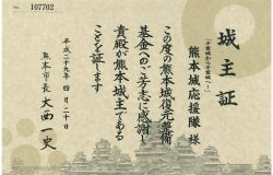 Continue Reading... (ご報告)熊本市より「復興城主証」をいただきました。 はコメントを受け付けていません
