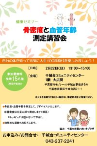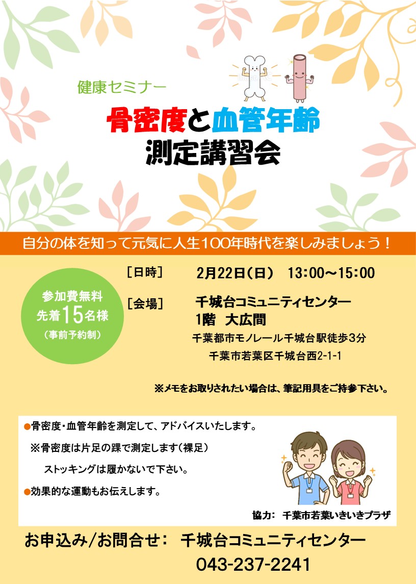 ■ 骨密度・血管年齢を測定して、アドバイスいたします。 ※骨密度は片足のくるぶしで測定します(裸足)。ストッキングは履かないで下さい。 ■ 効果的な運動もお伝えします。