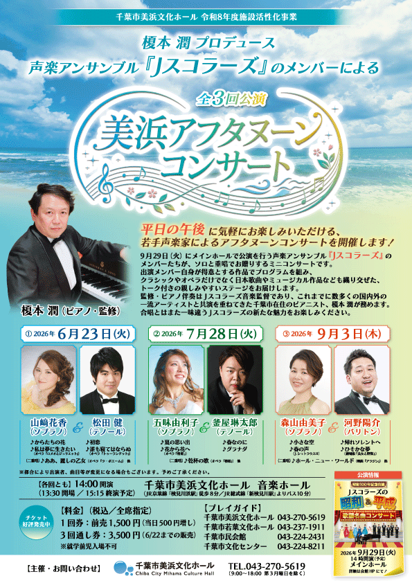 “全3回公演” 榎本潤プロデュース「美浜アフタヌーンコンサート」