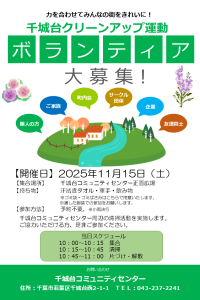 千城台コミュニティセンター周辺の清掃活動や、花壇のお手入れを行います。