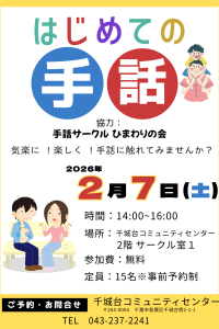 ※要事前予約:千城台コミュニティセンター窓口またはお電話にて受付致します。