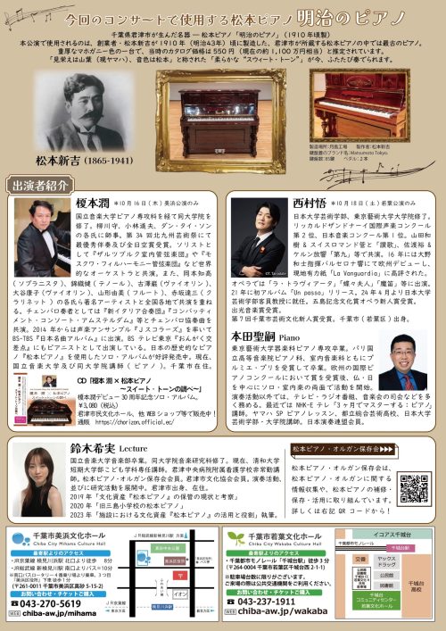 明治期、日本三大ピアノと称された君津市の文化資産「松本ピアノ」レクチャー&コンサート