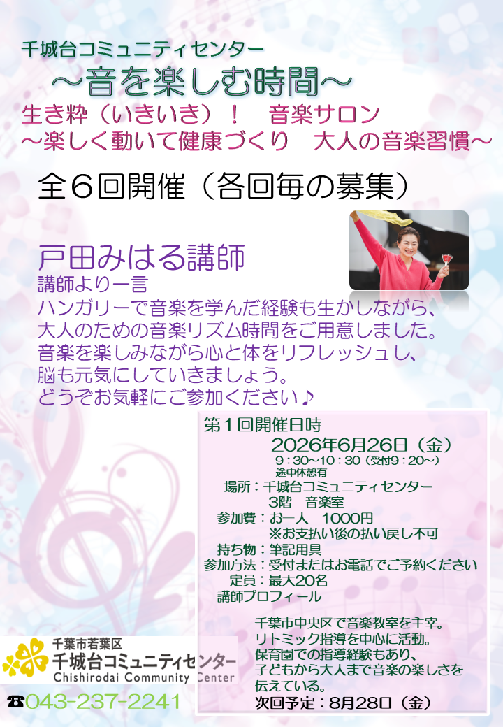 生き粋(いきいき)! 音楽サロン ~楽しく動いて健康づくり 大人の音楽習慣~