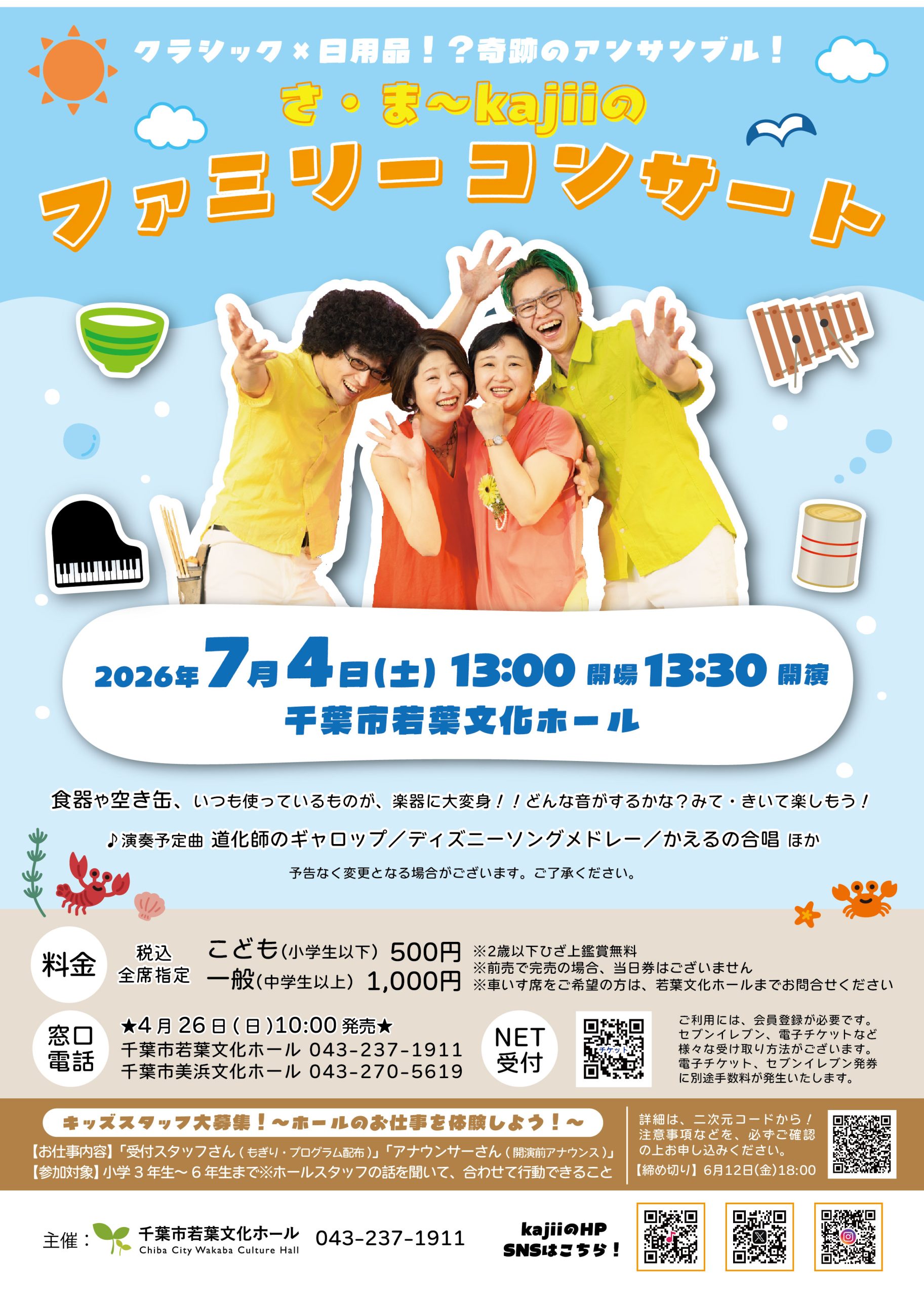 食器や日用品など、いつも使っているものが楽器に大変身してステージに登場!オリジナル楽器×ピアノ×パーカッションのハーモニーをぜひお楽しみください! はじめてのコンサートにも!