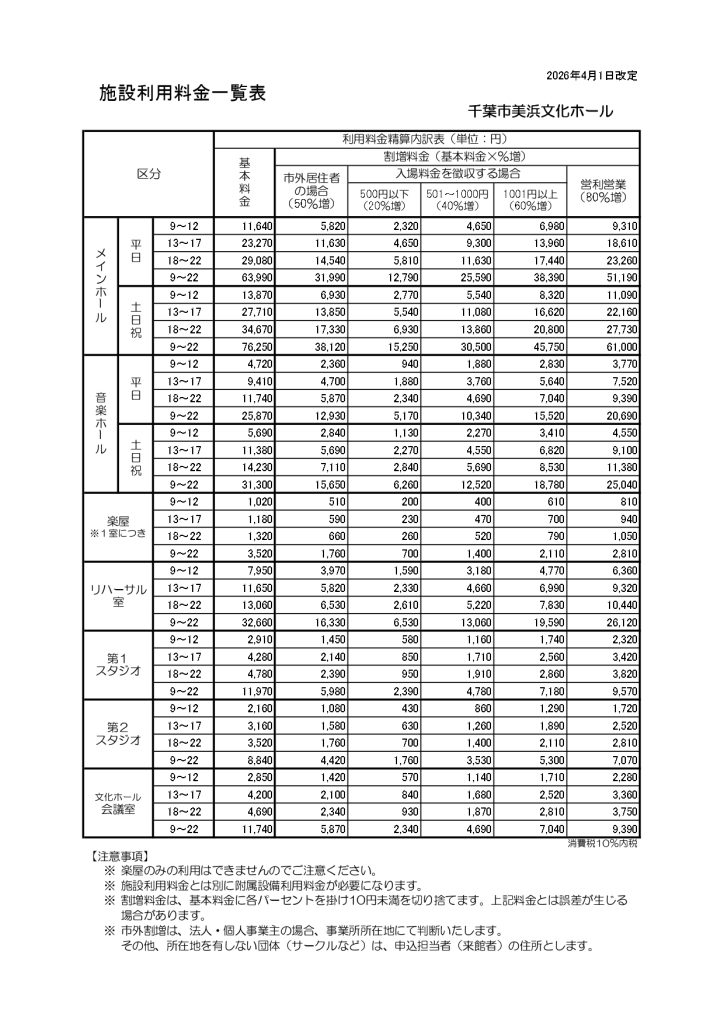日頃より、千葉市美浜文化ホールをご利用いただきまして誠にありがとうございます。