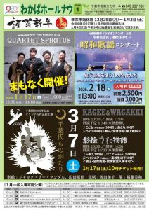 *催し物につきましては、主催者より情報公開の承諾のみを掲載しております。 また、ホールの空き状況とは異なりますのでご了承下さい。